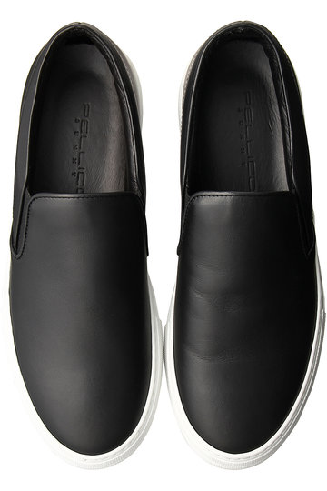 シンプルながら足元に存在感をプラスするスリッポン。マットな牛革素材が足元へモードな雰囲気をプラス。厚底タイプでさりげないスタイルアップが期待できるうえ、負担のかかりにくいラフなはき心地で、デイリーユースに最適! シンプルな佇まいなので、合わせるスタイリングを選ばない一足。