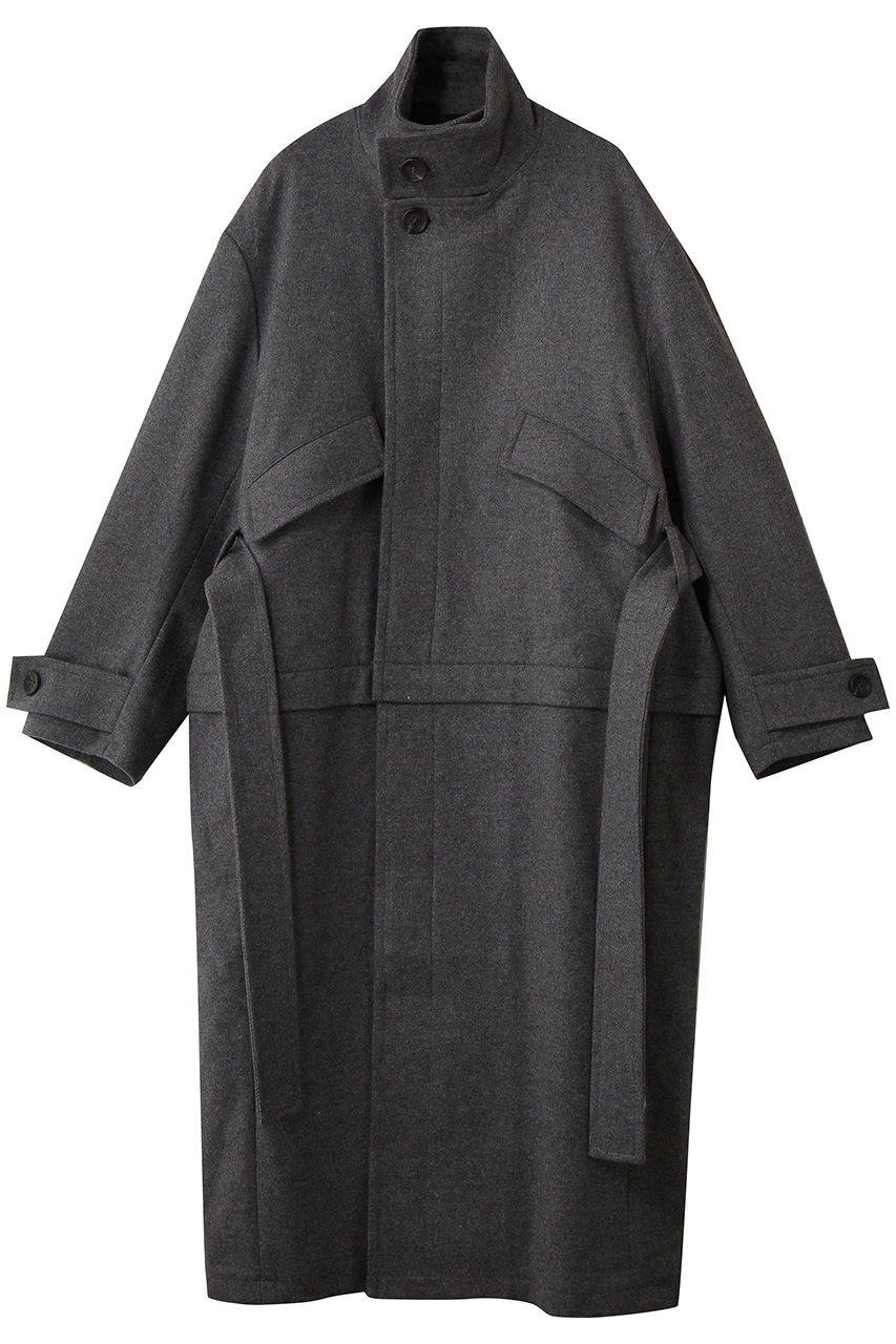 膝丈でどんなコーディネートにも合わせやすいややAラインのシルエット。身幅・袖丈にゆとりがあるため厚手のアイテムとの重ね着も可能。衿は立ててスタンドカラーとしても使用でき、シーンに合わせた着こなしが楽しめる。