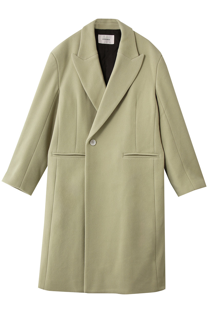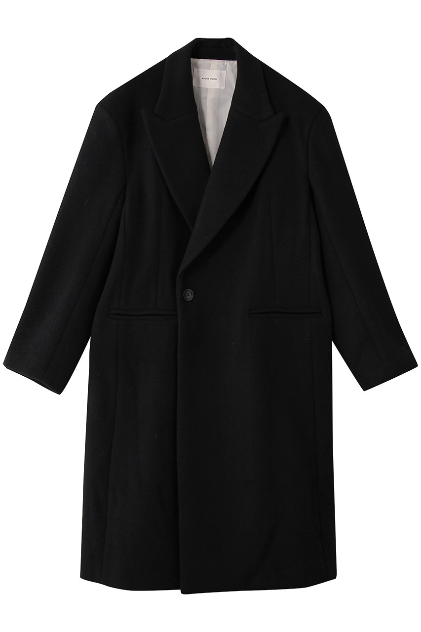 上質なウールを使用したメルトン素材で仕立てたミニマルなチェスターコート
