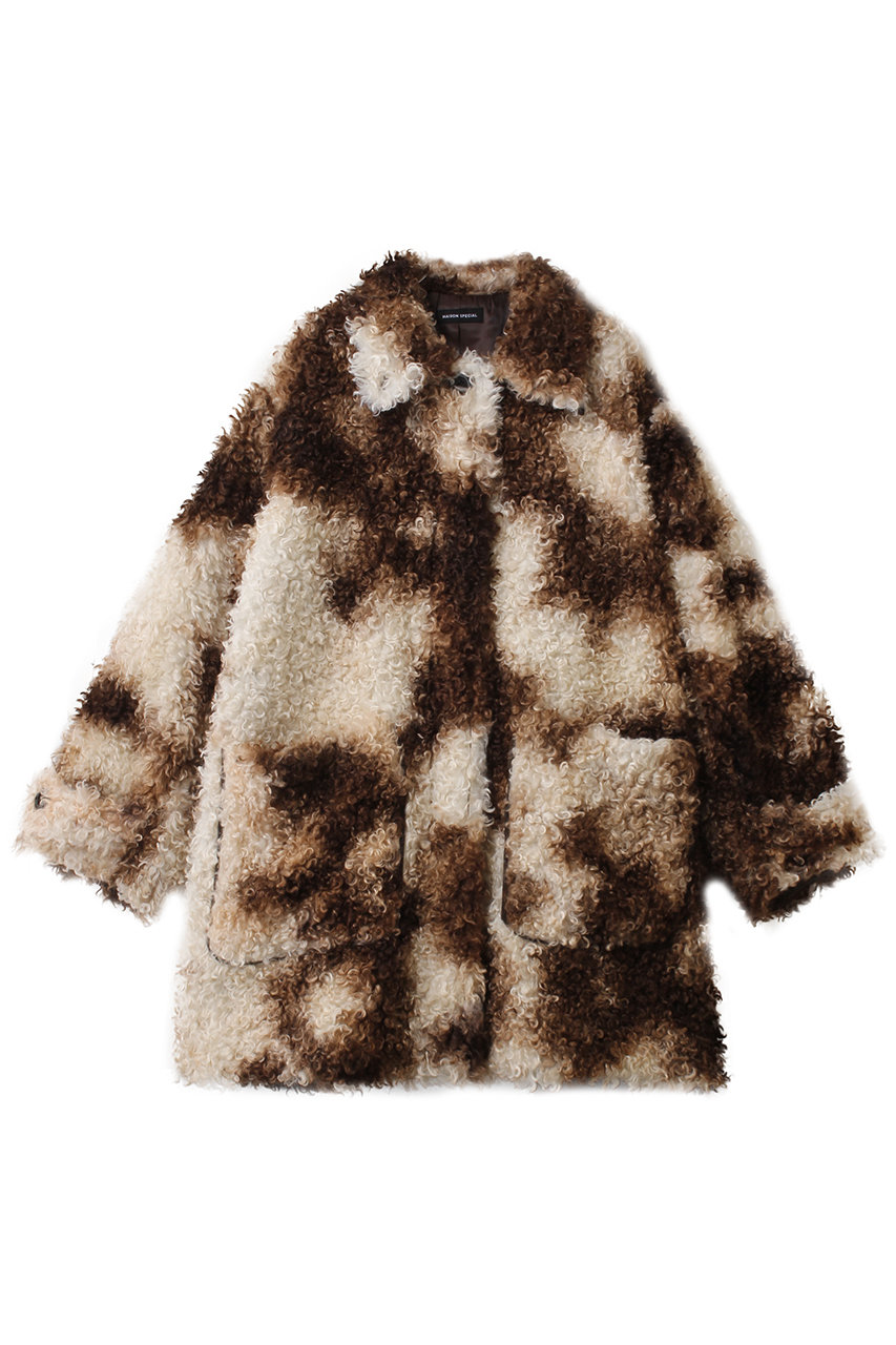 MLT1は、アニマルパターンフェイクファーコートと同じ素材を使用し軽さと毛のボリューム感が魅力