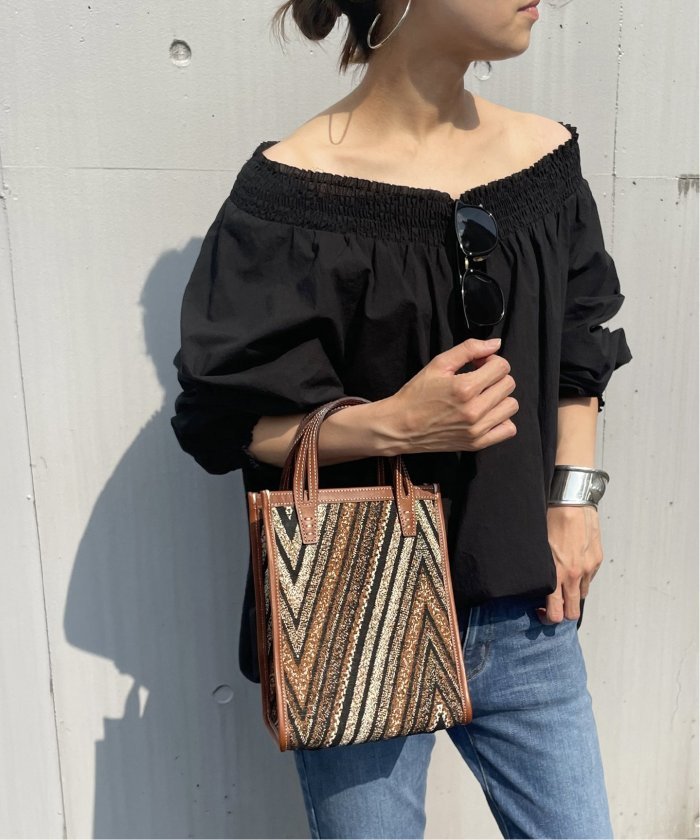 ジャカード素材の柄が目を惹くミニトートバッグ。生地は耐久性に優れ、アイコニックなハンドルデザインは二股にくり抜くことでスッキリと細くなり、華奢な女性の手でも持ちやすいのがポイント。コンパクトなサイズ感でもマチがしっかりしているので、きちんと収納力があるのも嬉しい。デイリーユースに大活躍してくれそう。