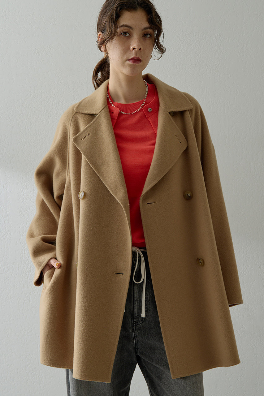 ヒップまでしっかり覆う丈感で、体型を自然にカバー。クラシックなピーコートに、大きめラペルと程よいビッグシルエットを加えることで、上品さと今らしさを両立