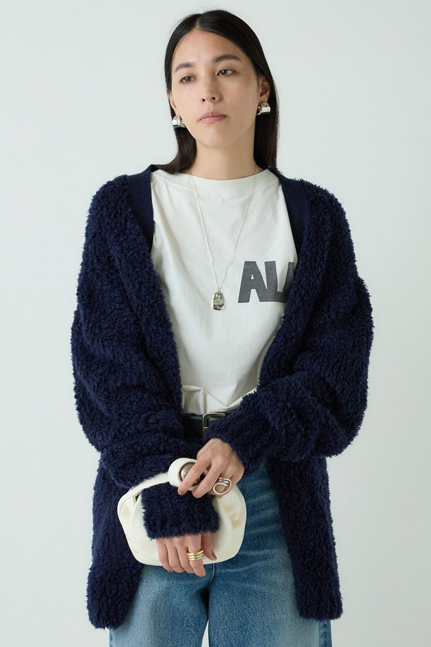 fabric-細番手のウール糸をモール風に仕上げた糸を使用。トップ糸で深みのある色目も魅力。ボリューム感のわりにとても軽い1着。高級糸の為部分使いで使用される事はあるが、全体的に使用するのはChaosが初めてなので他には出ない素材。-design-プルオーバーにくらべて長めの着丈が魅力のカーディガン。