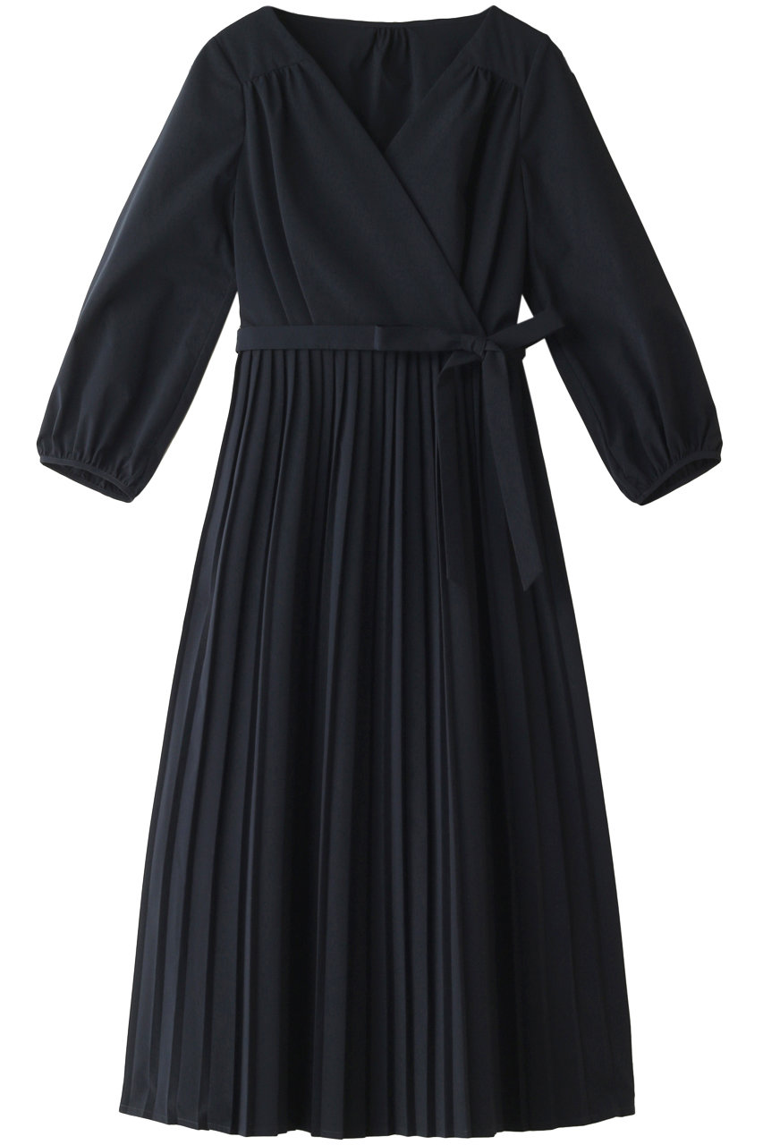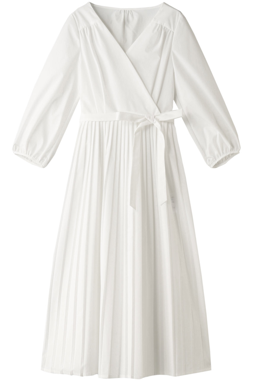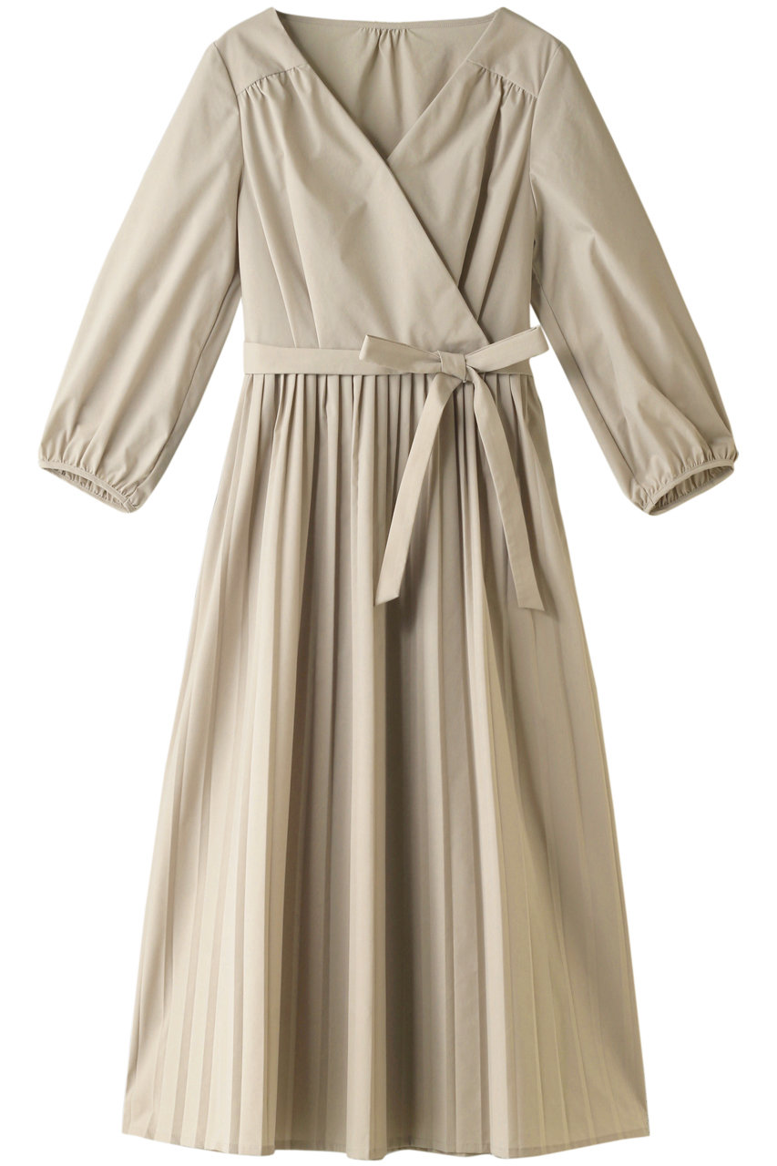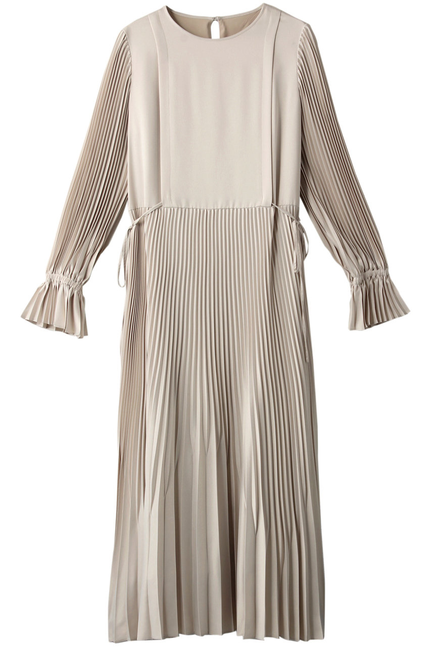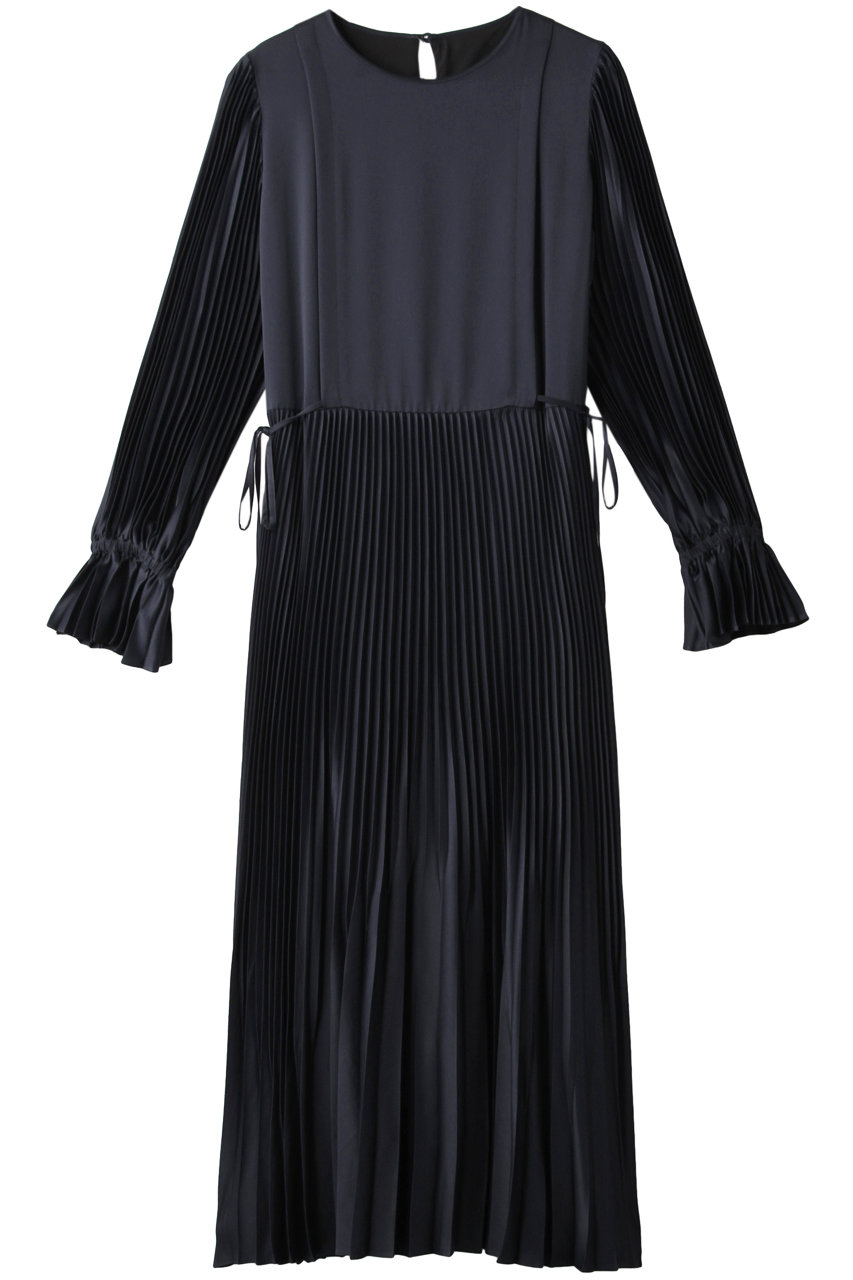 ワンプラスで上品かつドレッシーな着こなしが完成するワンピース。スリーブとスカートにあしらった繊細なプリーツが動きに合わせて女性らしいニュアンスをふりまく逸品。美しい光沢のサテン生地