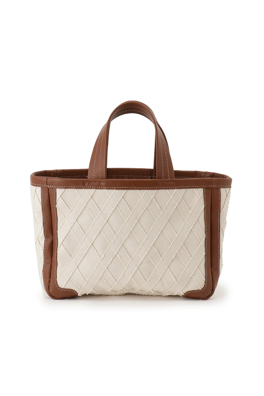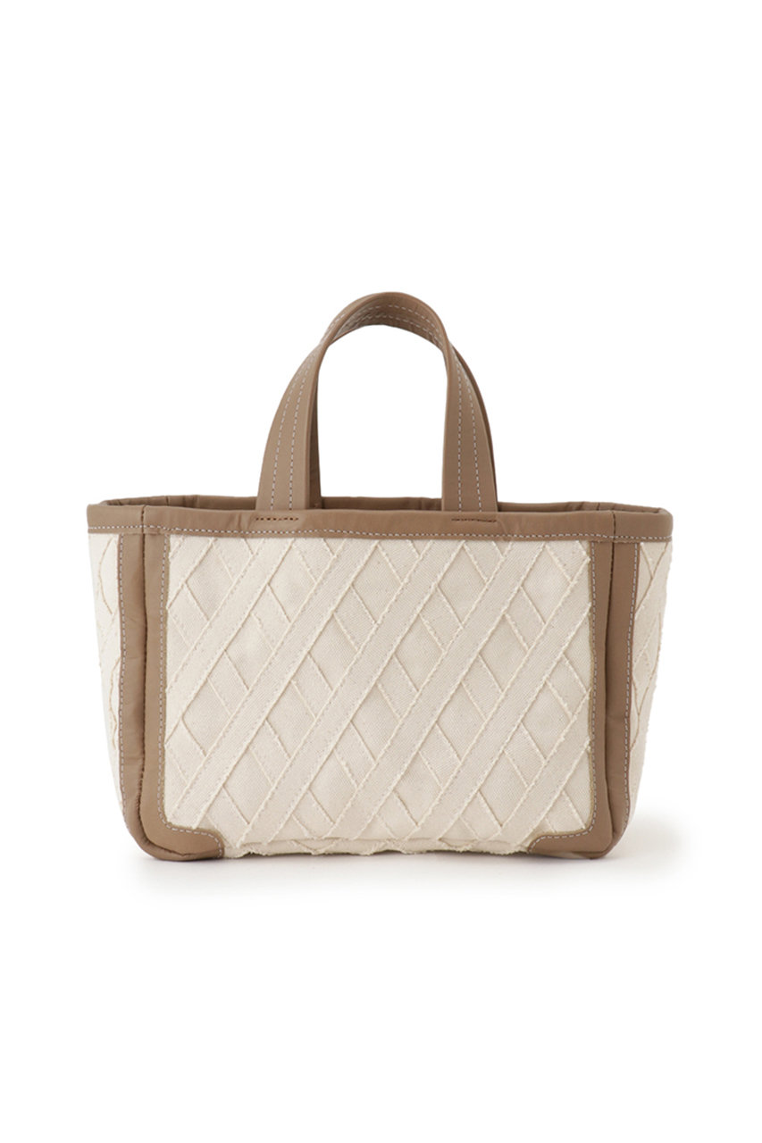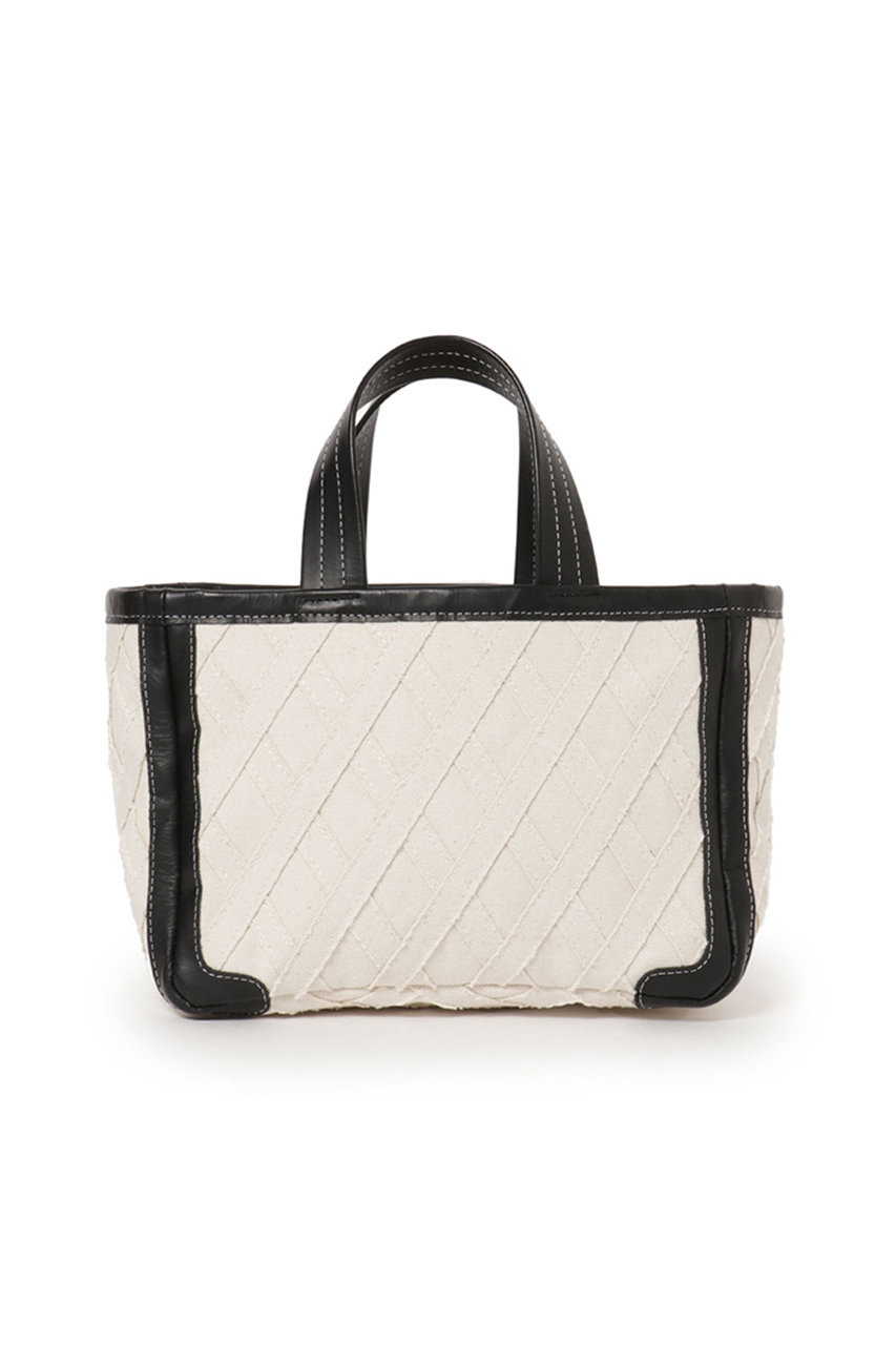 キャンバスを格子状に縫い合わせたオリジナル素材の新作トートバッグ。レザーのパイピングがあることでカジュアルになりすぎず、幅広いコーディネートに合わせられるアイテム。小ぶりなサイズ感はちょっとしたお出かけにぴったり。上部に巾着がついているのも嬉しいポイント。