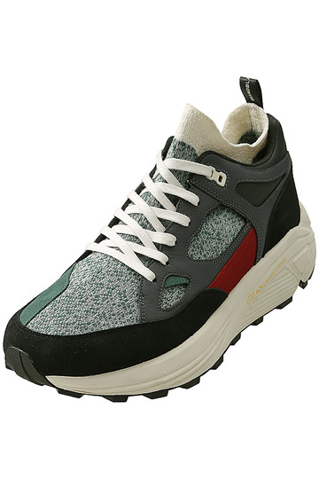 adidasやFILAなどの大手スポーツブランドでデザインを担当し、多くの斬新で革新的なヒット商品を生み出したデザイナー”デビット・レイシー”が立ち上げた新ブランド「ブランドブラック」。ブランドの人気モデルAURAを「メゾンキツネ」仕様にアップデート。抜群のフィット感を発揮するソック仕様と快適なクッショニングを実現するビブラム社製のソールを採用。見た目はもちろん、病みつきになるような快適な履き心地も兼ね備えた最強の1足。
