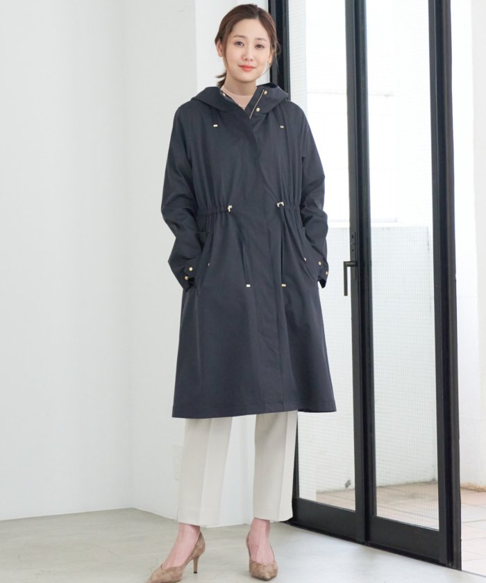 程よい光沢感のある風合いとゴールドのパーツ使いで上品に仕上げたモッズコート。ドロスト仕様のウエストでシルエットが調整できるのがポイント。取り外しできるライナー付きなのも◎。カジュアルからキレイめスタイルまで幅広いコーディネートで大活躍してくれそう。