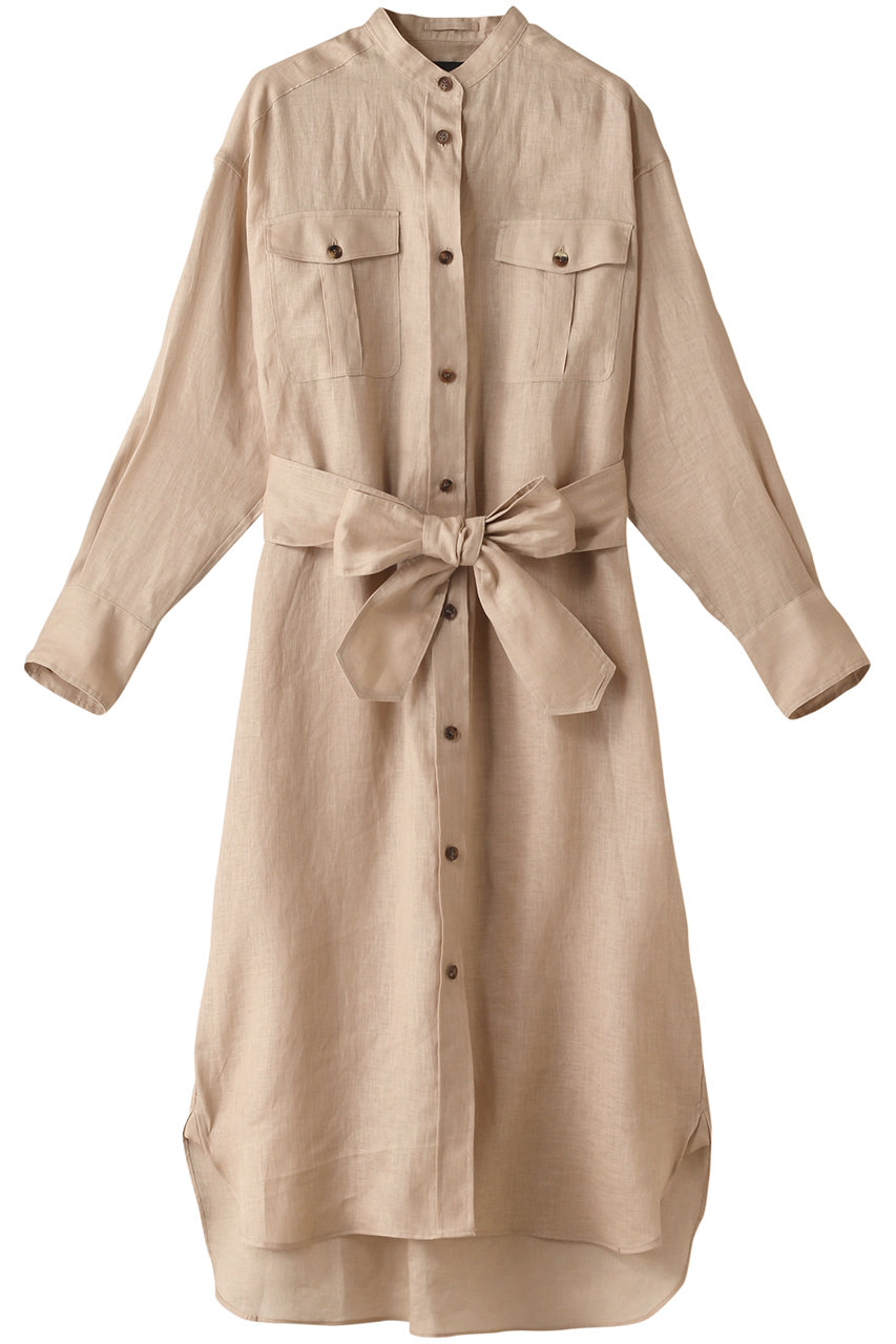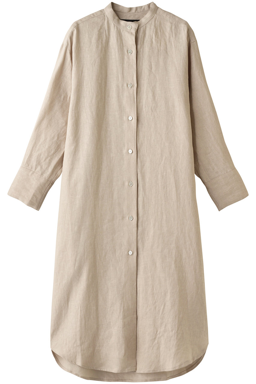 ほんのり透け感のある麻100%素材で仕上げた、清涼感あふれるシャツワンピース。シックなカラーと落ち着いたロングフォルムが大人の装いにマッチ。1枚ではもちろん、前開きでライトな羽織にも、ウエストリボンをキュッと縛って今年風にと自由自在に着回しが効くアイテム。
