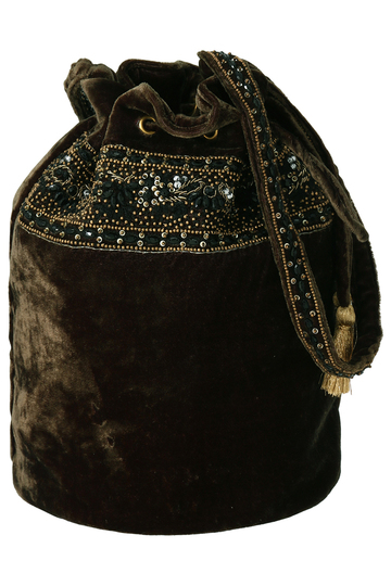 「ヌキテパ」らしいこだわり刺しゅう入り エスニックな刺しゅうドレスやブラウスが人気を集めている「ヌキテパ」から、ブランドらしいこだわりのビーズ刺しゅうを施したショルダーバッグが登場。秋冬に向けてシックな落ち着きが手に入るベロア素材を使っていて、今年も引き続き人気の巾着形を採用。刺しゅうアイテムを小物で取り入れたい方におすすめ。