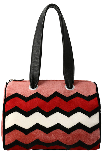 アクセ感覚で持ちたいキャッチーなデザイン コーディネートを印象付けるジグザグ模様のカラフルバッグ。遊びの効いたデザインでありながら、ベロアの上質な素材使いで大人が持っても不自然にならない落ち着きを兼ね備えた顔立ちとなっている。荷物がたっぷり入るボストン形に加え、ハンドルは肩掛けできる長さに設定されているため使いやすさの面でも優秀。