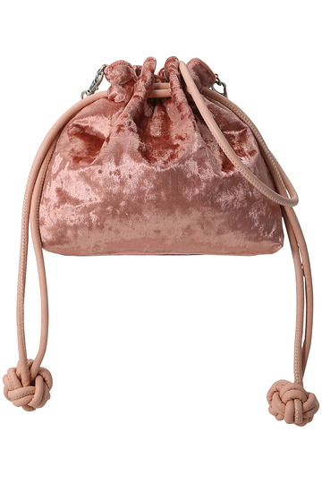 トレンドムード盛り上げるベロア素材 メランジ感のあるクラッシュベルベットがモード感をプラスするバック。取外し可能なショルダーベルト付きで、ショルダー掛けと巾着の2WAYで持ち方を選べるのが嬉しい。コンパクトなサイズ感でキレイめスタイルにも相性抜群。トレンド感たっぷりのベロアアイテムはまずは小物から投入させるのがおすすめ。