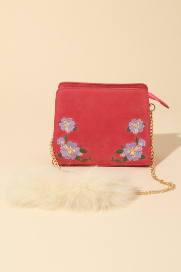 刺繍xファーxベロアのトレンドを詰め込んだ主役級ショルダーバッグ 表に花柄の刺繍が施されたクラシカルなヴィンテージライクなバッグがお目見え。フォックスファーを使用してあるので、高級感もプラス。ファーもショルダーも持ち手も取り外しが可能になっているので2WAY仕様の持ち手と、アレンジがきくファーはコーディネートによって使い分けて。1点投入でトレンドのスタイルに変化する、品の良いショルダーバッグ。クラシカルなベロアが映えるブラックとレトロ配色なピンクの2色展開。