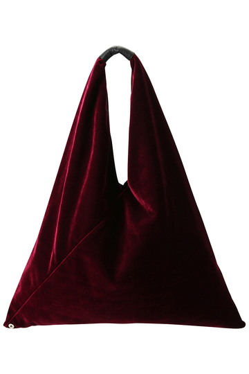 ふろしきのような三角フォルムが斬新! ふろしきのような立体的なフォルムが特徴となった「MM6」の定番でもある三角バッグ。そんなアイコニックバッグが秋冬に向けて、トレンドのベロア素材で登場。スタイルや荷物の量に合わせた調節が可能で、持った時のフィット感もファンが多い秘密! カジュアルなのにモード感のある、ブランドならではの魅力が詰まったアイテム。